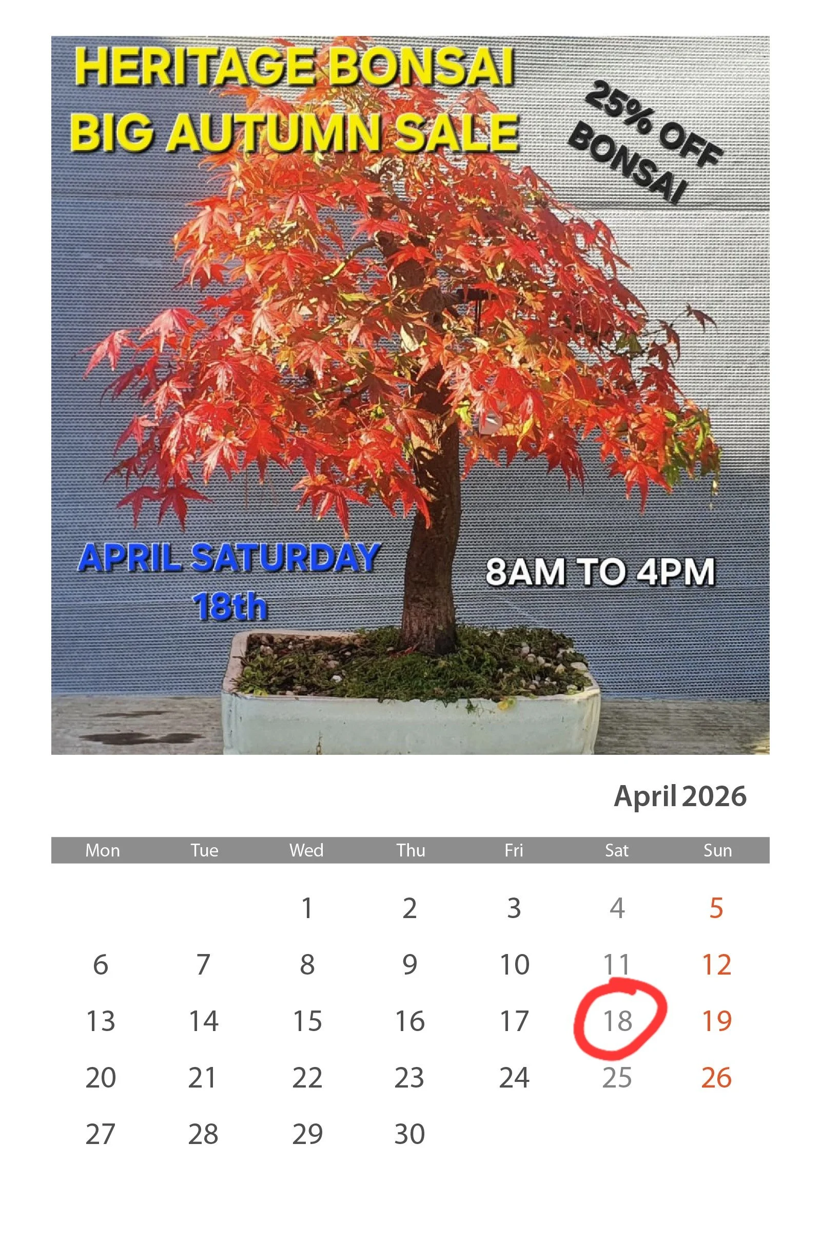 We have a huge selection and variety of bonsai for sale, over 500 available starting at $30 and up and for this day a whopping 25% off marked bonsai prices. Bigger discounts for multiple purchases.